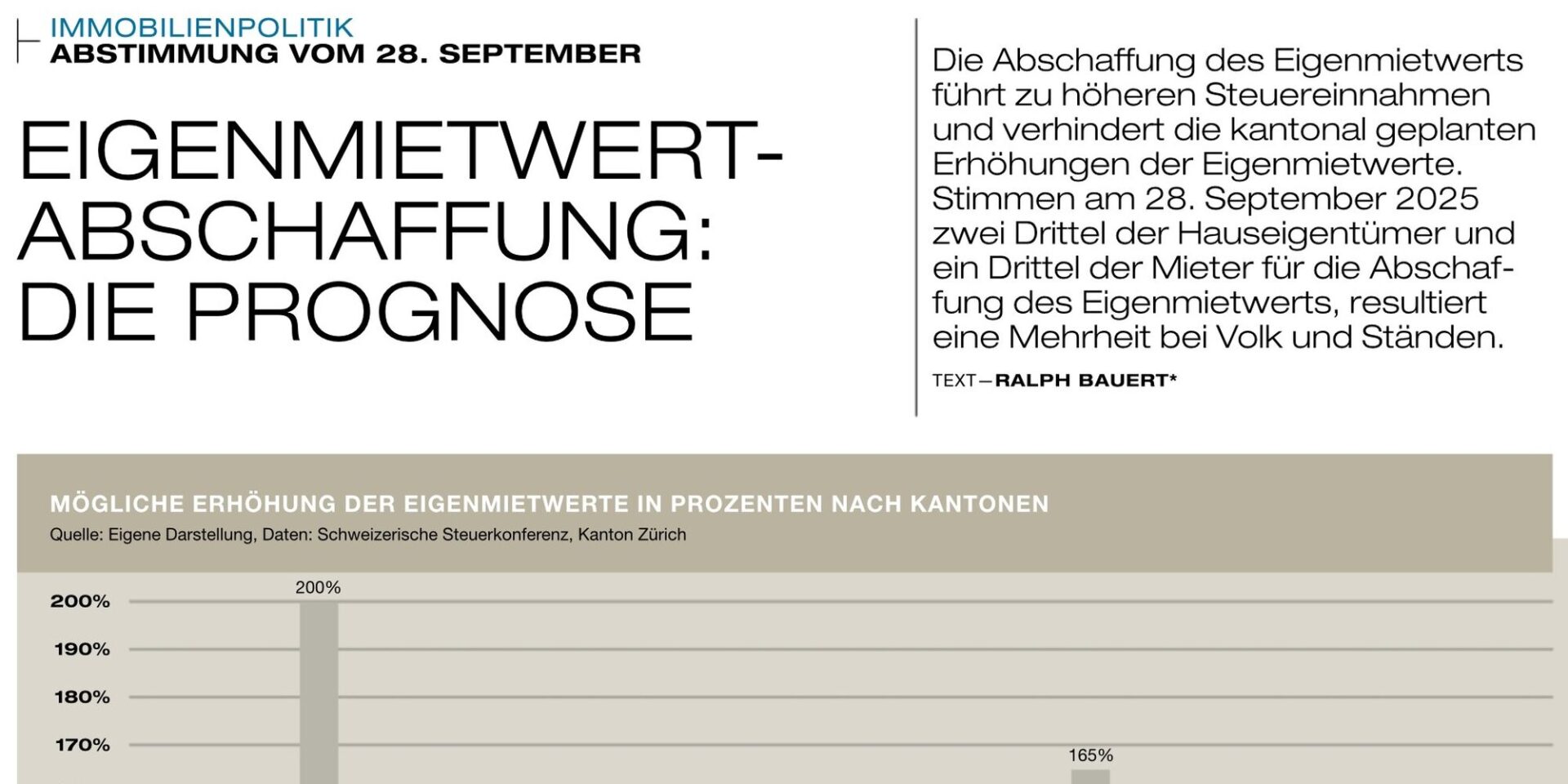 Welche Auswirkungen die Abschaffung des Eigenmietwerts hat und wie die Abstimmung vom 28. September 2025 ausgehen kann, wurde von HEV-Geschäftsführer Ralph Bauert analysiert. Die Fachzeitschrift Immobilia vom SVIT Schweiz berichtet in der Ausgabe vom September 2025 über die Ergebnisse dieser Analyse.