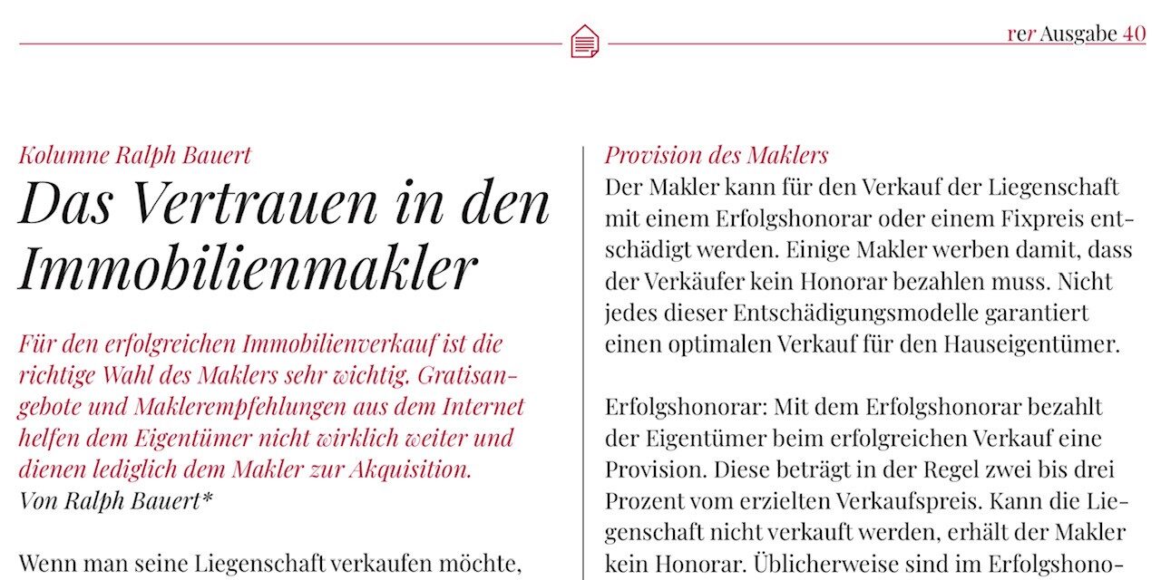 Die Immobilienzeitschrift Real Estate Report publiziert in der Ausgabe 40 vom 14. September 2022 den Fachartikel von HEV-Geschäftsführer Ralph Bauert zum Thema der richtigen Maklerwahl beim Hausverkauf.