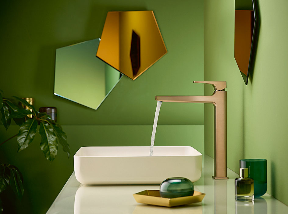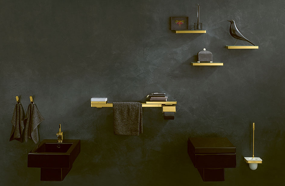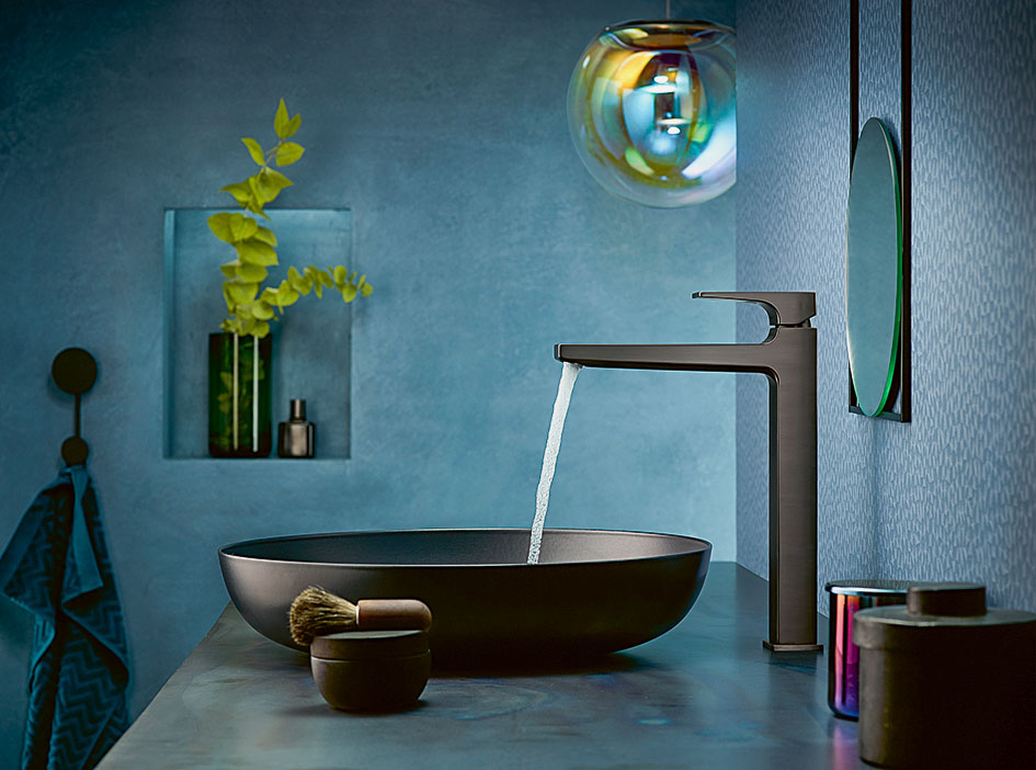 Was bisher aus Chromstahl war, erhält dank Oberflächenveredelungen eine grandiose neue Vielfalt. Im Bad entsteht ein völlig anderes Feeling, wenn Armaturen, Duschrinne, Brausen, Seifenhalter plötzlich schwarz, bronzen oder in Goldoptik daherkommen. Mit viel Liebe zum Detail.