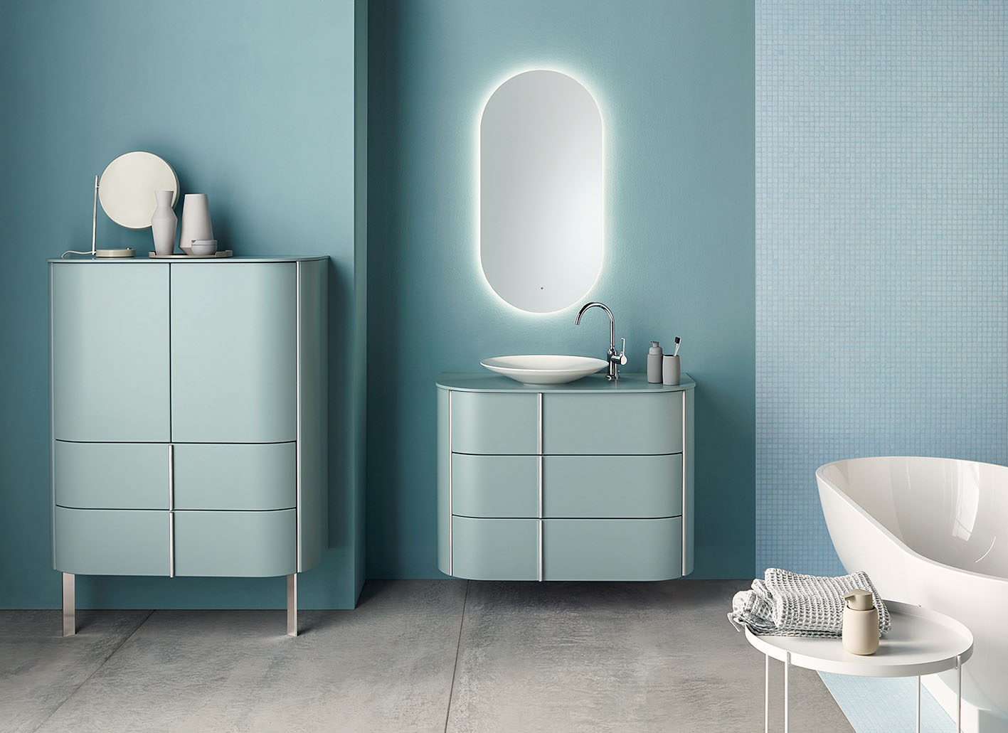 Etwas sanfter kommen Pastelltöne daher, das Waschbecken in Rosé, Badmöbel in Vanille oder Hellblau, die abgerundet an vergangene Zeiten erinnern und doch modern wirken. Pastelltöne sind freundlich, verträumt und romantisch.