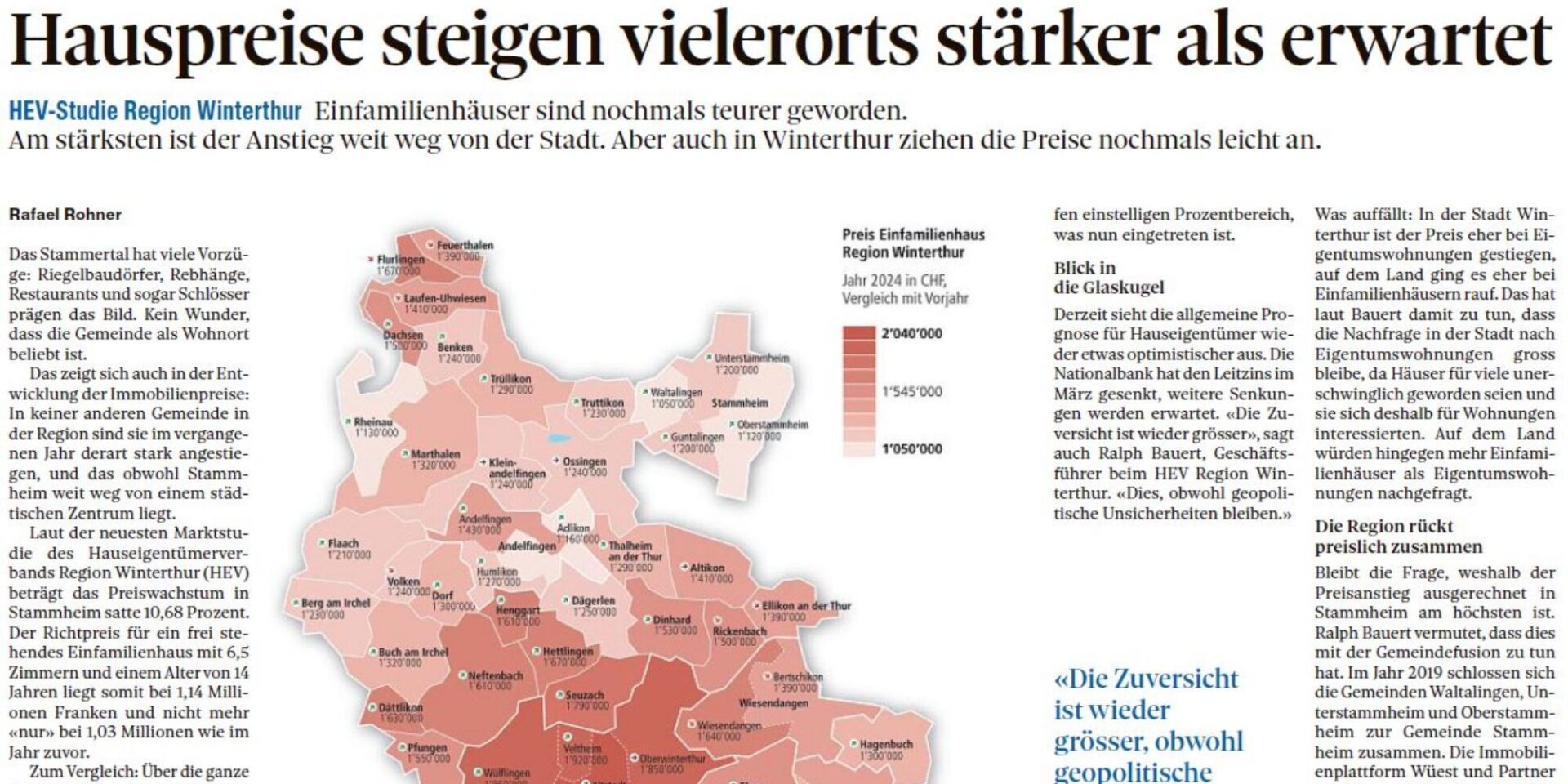 Der Landbote berichtet in der Ausgabe vom 16. April 2024 über die Immobilienstudie vom HEV Region Winterthur.