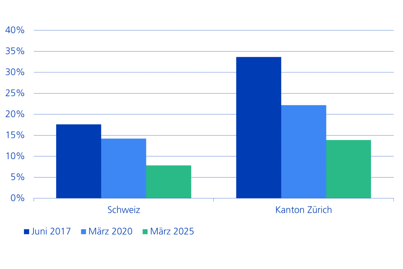 Tatsächlich scheint es zunächst so, als nutzten Mietende die neuerliche Gelegenheit zum Senkungsbegehren weniger rege als früher. Wie die Mietpreisindexdaten des Bundesamts für Statistik (BFS) zeigen, haben bisher lediglich 8 Prozent der Schweizer Miethaushalte eine Mietzinssenkung erhalten, im Kanton Zürich waren es 14 Prozent.