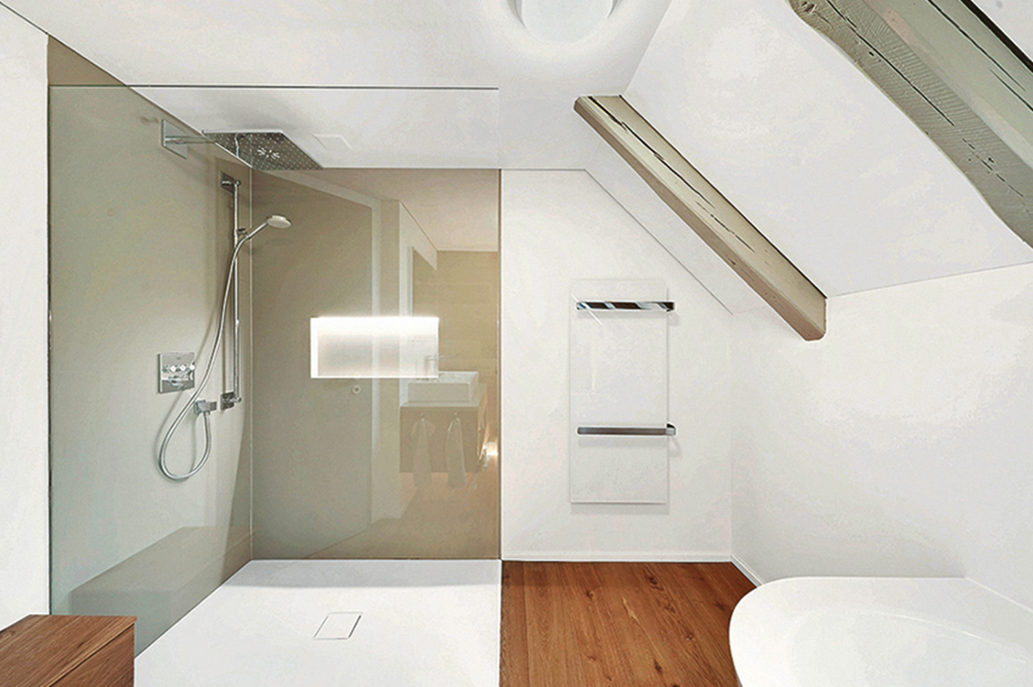 Bei einem Badumbau wird eine barrierefreie Ausstattung in der Regel nicht automatisch in die Planung miteinbezogen. Es ist jedoch sinnvoll, die Wände und Anschlüsse für Haltegriffe, Sitzflächen oder Dusch-WCs bereits entsprechend zu verstärken bzw. vorzubereiten. Wichtig ist auch eine gute Ausleuchtung des Bades.