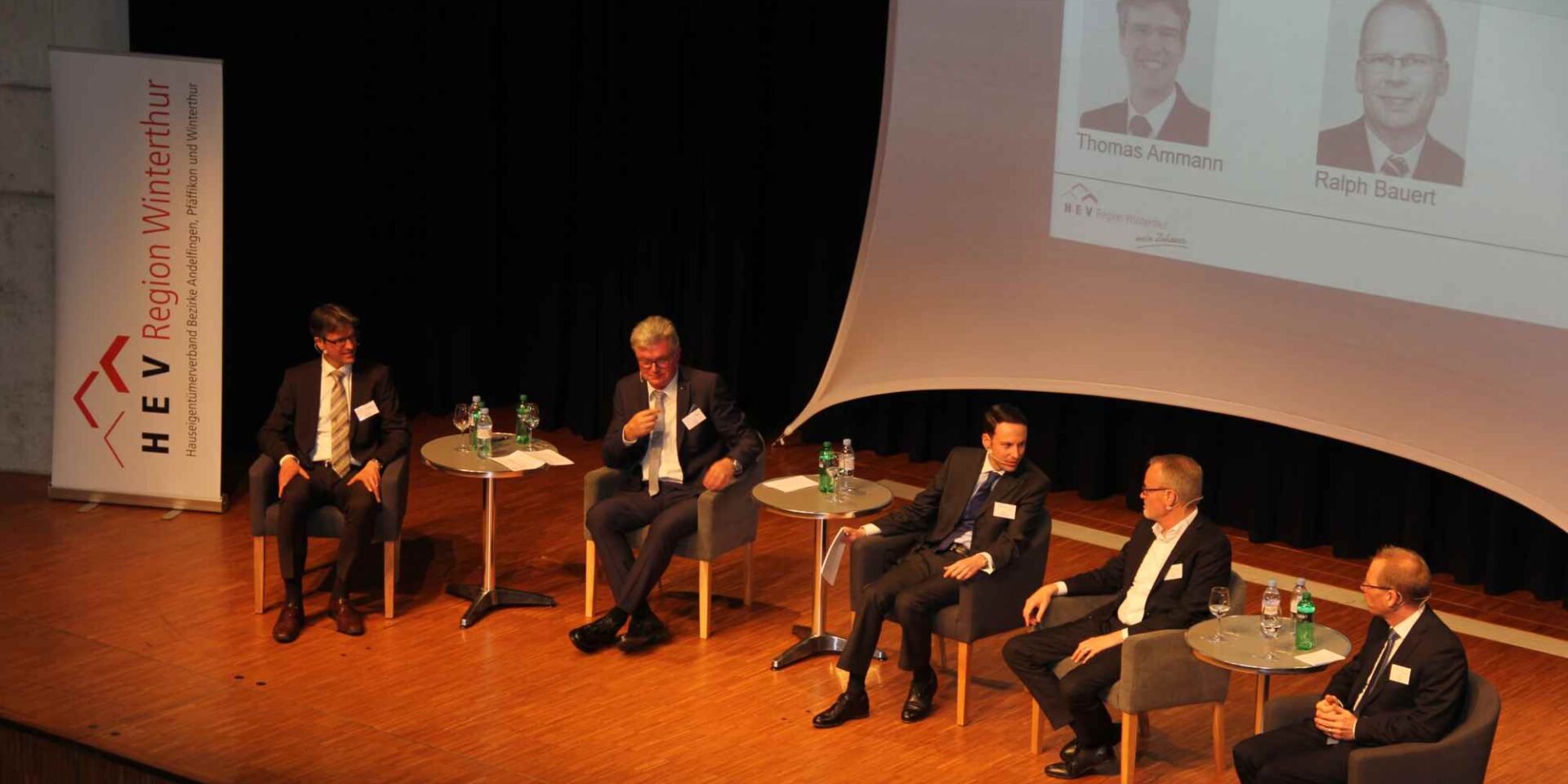 Bei der anschliessenden Podiumsdiskussion, unter der souveränen Leitung vom HEV Vorstandsmitglied Matthias Baumberger, konnten die verschiedenen Themen weiter vertieft werden. Martin Farner konnte dabei über die anstehende Behandlung des Energiegesetzes im Kantonsrat informieren und garantierte, dass sich der Hauseigentümerverband für eine möglichst eigentümerfreundliche Umsetzung einsetzen wird. Nachdem alle Fragen aus dem Publikum beantwortet wurden, wurde beim Apéro mit den Referenten und anderen Hauseigentümern weiter diskutiert.