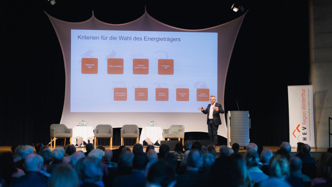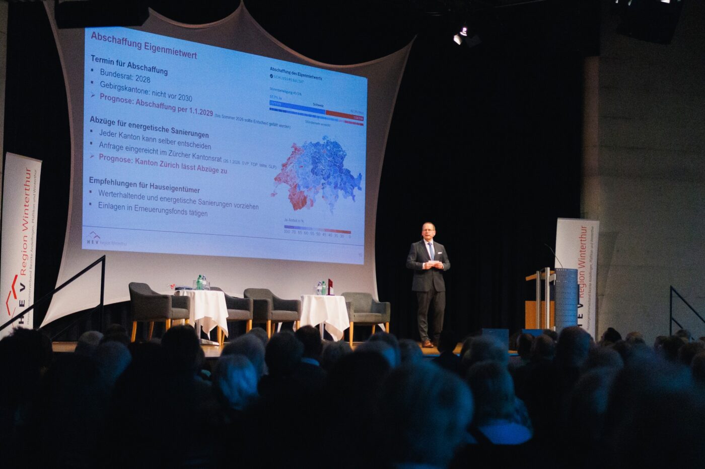 Über 350 interessierte Haus- und Wohneigentümer kamen am 31. März 2026 an die Veranstaltung «Wohneigentum Region Winterthur 2026» des Hauseigentümerverbands Region Winterthur. Neben Informationen zum Immobilienmarkt der Region Winterthur und der Verleihung des HEV-Awards für die beste Wohneigentumsgemeinde informierten zwei Fachexperten über Heizungsersatz und Photovoltaik.