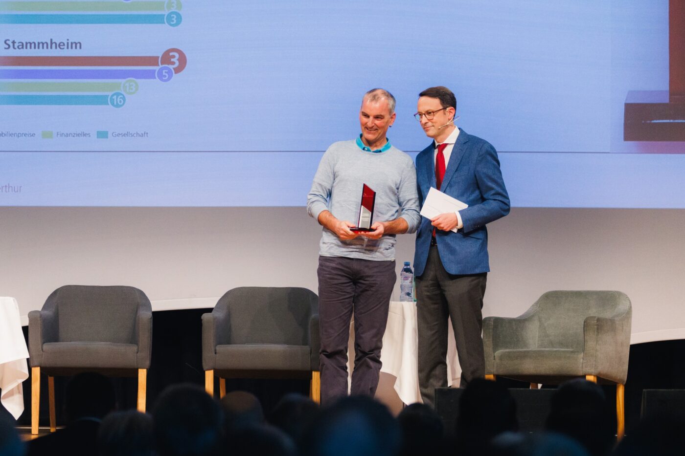 Den HEV-Award für die beste Wohneigentumsgemeinde konnte HEV-Präsident Matthias Baumberger dieses Jahr der Gemeinde Dinhard überreichen. Dinhard erreichte bei der Preissteigerung von Wohneigentum den dritten Platz, bei finanziellen Aspekten den zweiten Platz und bei gesellschaftlichen Themen den 18. Platz. Gemeindepräsident Thomas Schmid bedankte sich mit der Botschaft «Toll, stolz, danke» für den HEV-Award.