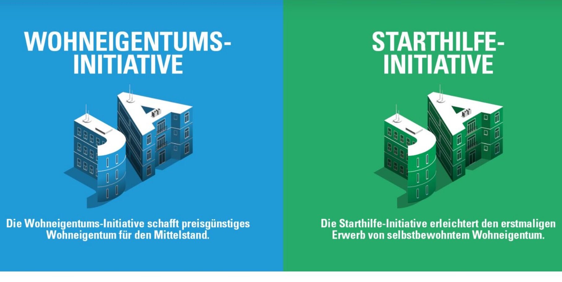 Die Wohneigentums-Initiative schafft preisgünstiges Wohneigentum für den Mittelstand. Die Starthilfe-Initiative erleichtert den erstmaligen Erwerb von selbst genutztem Wohneigentum. Weitere Informationen und die Unterschriftenbögen gibt es auf folgender Seite: www.chance-wohneigentum.ch