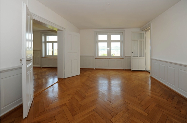 Wir vermieten per 1. September 2025 eine elegante 5.5-Zimmer-Wohnung im Hochparterre eines herrschaftlichen Mehrfamilienhauses (Baujahr 1903) für zwei Jahre befristet.