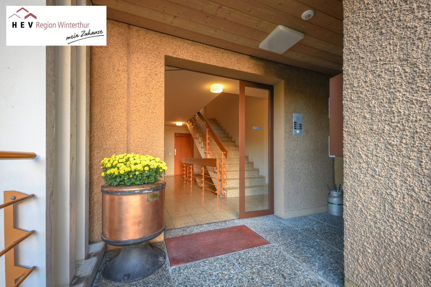 Stadt Winterthur. Die Umgebung ist von vielen Ein- und Mehrfamilienhäusern geprägt. Die umliegenden