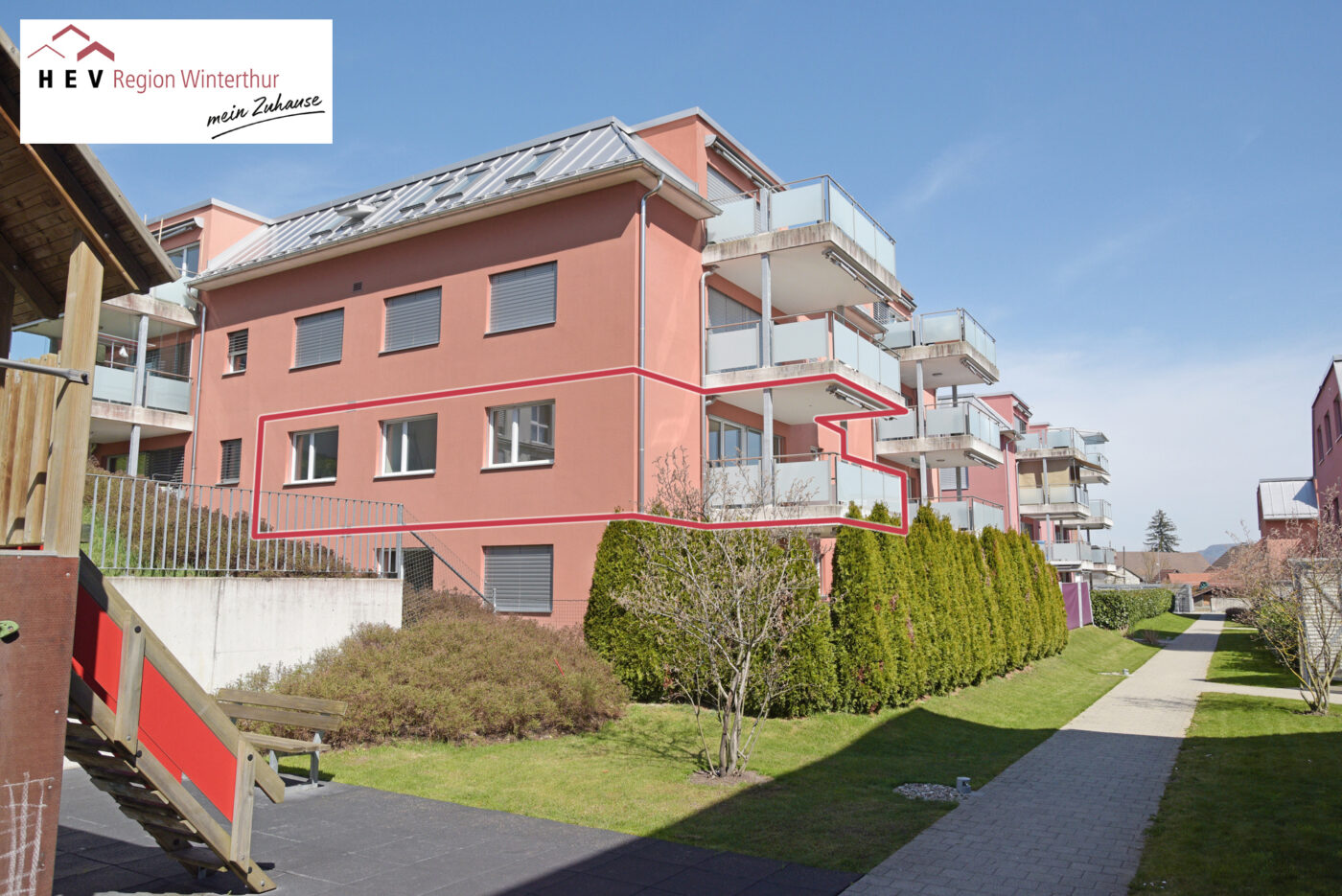 Die 3.5 Zimmerwohnung ist Teil der Arealüberbauung "Rainreben", welche 2012 erstellt wurde.
