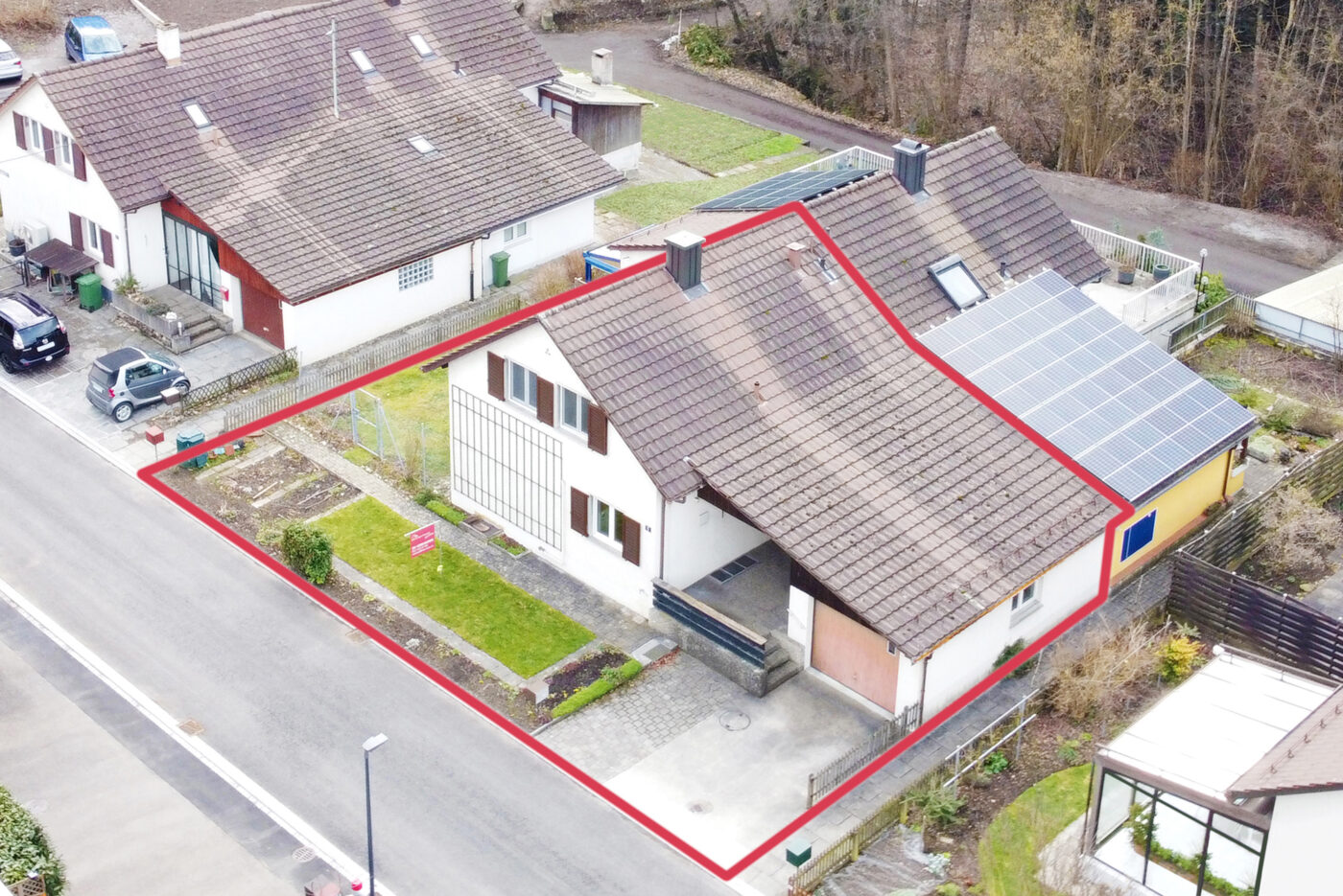Das einseitig angebaute 5-Zimmer-Einfamilienhaus liegt friedlich eingebettet zwischen dem Wolfensberg