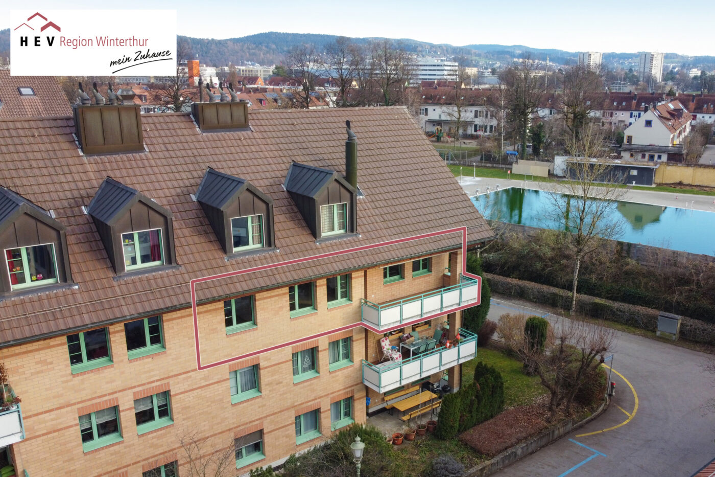 Die 4.5 Zimmer-Eigentumswohnung befindet sich ruhig gelegen im beliebten Stadtkreis Mattenbach und ist von anderen Mehrfamilienhäusern sowie Einfamilienhäusern umgeben. Die Liegenschaft liegt gegenüber dem Schwimmbad Geiselweid. Einkaufsmöglichkeiten (Coop, Migros, SPAR etc.), Schulen und eine Tankstelle befinden sich ebenfalls in nächster Nähe. Trotz der urbanen Umgebung profitieren Sie dank dem naheliegenden Eschenbergwald von idealen Naherholungsgebieten und der Nähe zur Natur.