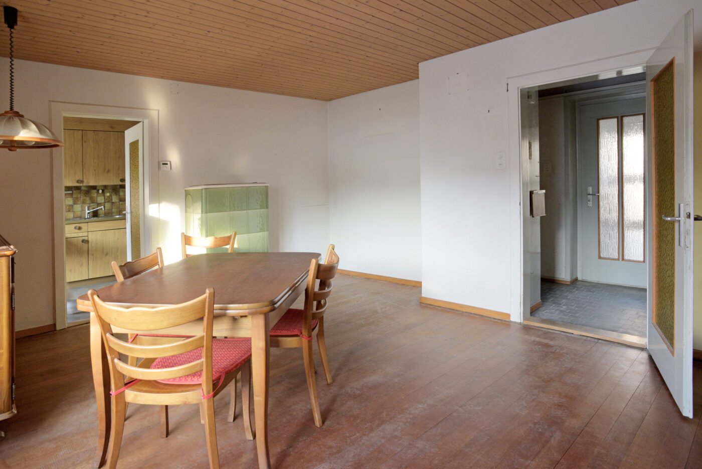 ca. 20 m2 und einen Kachelofen, welcher von der Küche aus beheizt wird. Von dort gelangen Sie