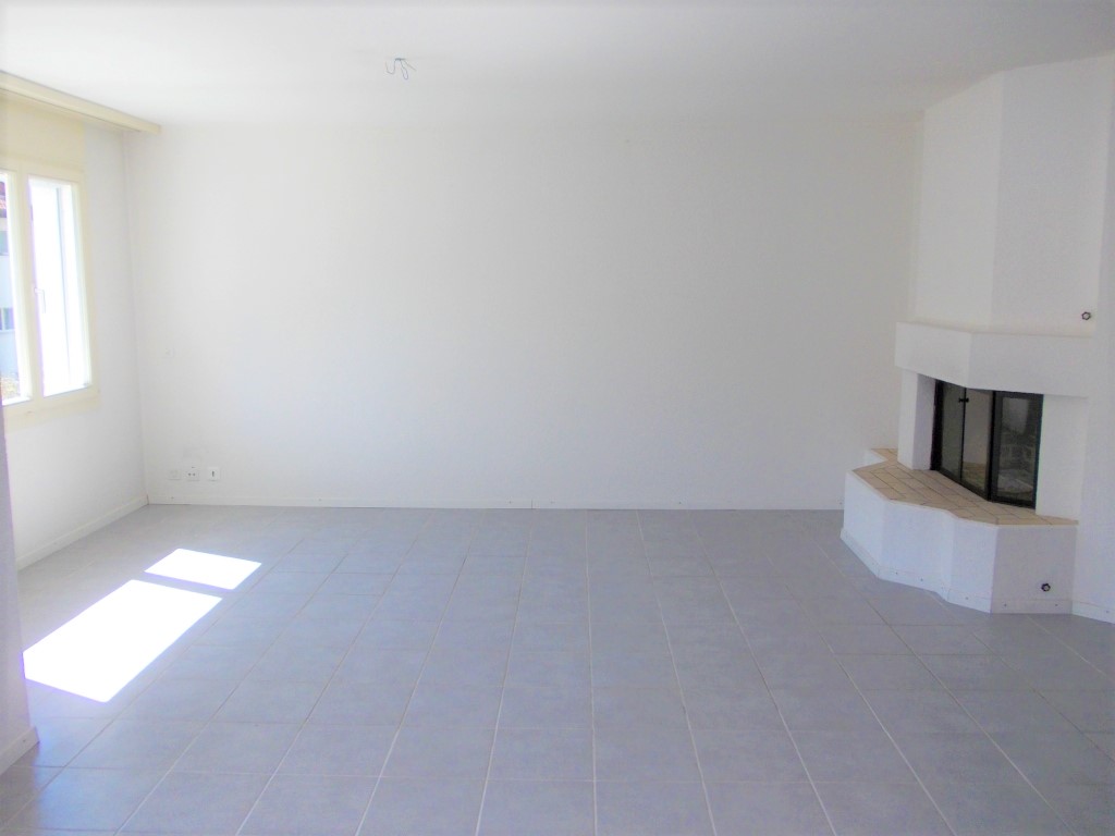 In diesem geschickt aufgeteilten und lichtdurchfluteten Mietobjekt führt das Entrée in die Wohnküche, sowie in das grosse Wohnzimmer und dem Cheminée mit Verglasung, oder in das leicht abgetrennte Studio. Beim Entrée ist eine Garderobe und ein separates WC mit Dusche.