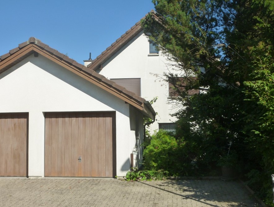 Zum Mietobjekt gehören auch ein grosser Garten, Sitzplatz, Doppelgarage mit vorgelagerten Abstellplätzen sowie ein zusätzlicher Autoabstellplatz.