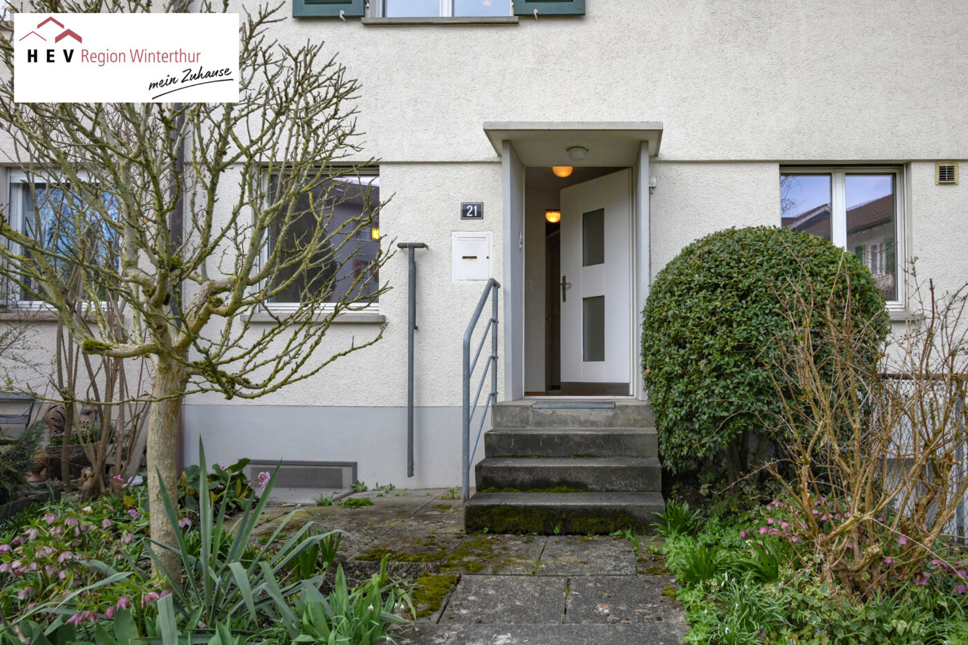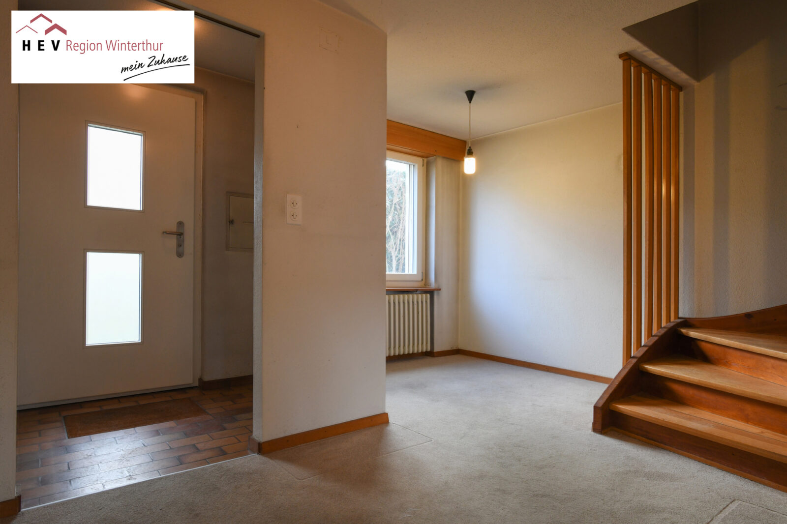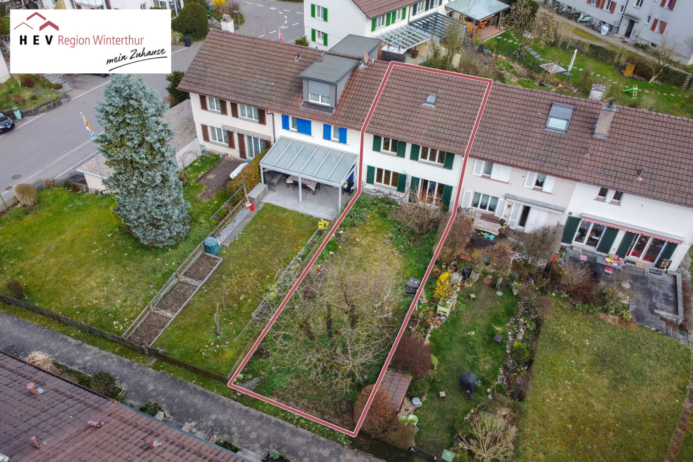 Das Reiheneinfamilienhaus befindet sich ruhig gelegen im Quartier Guggenbühl am Rande der Stadt Winterthur in Oberwinterthur. Die Lage ist sehr familien- und kinderfreundlich, da die Quartierstrasse durch die 30er Zone sehr verkehrsberuhigt ist. Das Haus ist sehr kompakt geschnitten und befindet sich in einem sanierungsbedürftigen Zustand.