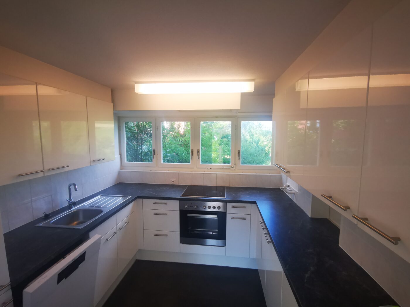 Die Küche hat ein Keramikkochfeld, Dampfabzug, Backofen, Geschirrspüler, Kühlschrank mit Tiefkühler und besitzt viele Schränke. Das Bad hat eine Badewanne, Waschbecken mit Spiegelschrank, Clos-o-mat und ein Fenster. Die drei anderen Zimmer sind lichtdurchflutet und eignen sich hervorragend für Büro, Schlafzimmer oder Kinderzimmer.
