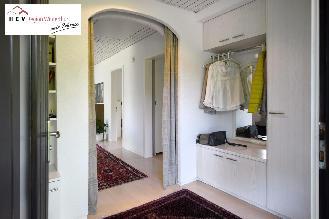 Das einseitig angebaute 5.5 Zimmer-Einfamilienhaus befindet sich ruhig gelegen in Guntershausen. Die Region zeichnet sich durch eine Vielfalt an Gewerbe- und Kleingewerbebetrieben sowie gut erschlossene Wohngebiete aus. Der ländliche Charakter mit den in nächster Nähe liegenden Natur- und Erholungsräumen bietet eine ausgezeichnete Lebens- und Wohnqualität. Mit dem öffentlichen Verkehr sind Sie innerhalb kürzester Zeit in Winterthur oder Zürich. Das Grundstück ist ideal besonnt und bietet eine schöne Weitsicht.